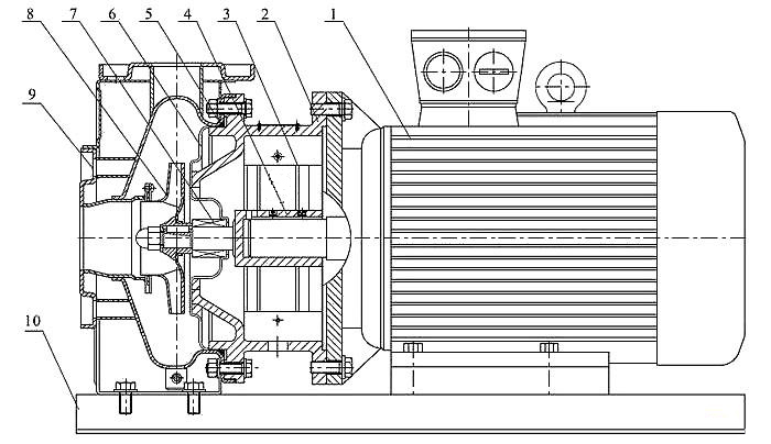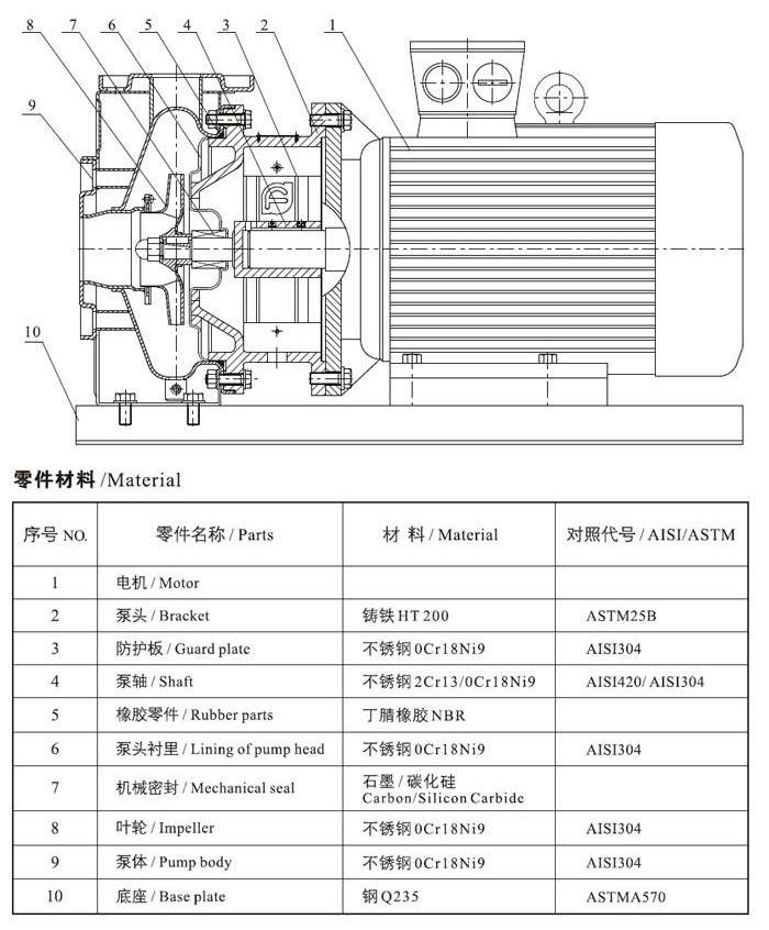 ZS型不銹鋼臥式單級(jí)離心泵為泵軸直聯(lián)型聯(lián)結(jié),由泵、泵軸和標(biāo)準(zhǔn)電機(jī)組成: