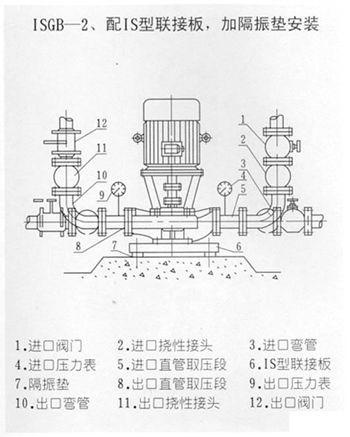 ISGB型便拆立式管道離心泵安裝尺寸圖: