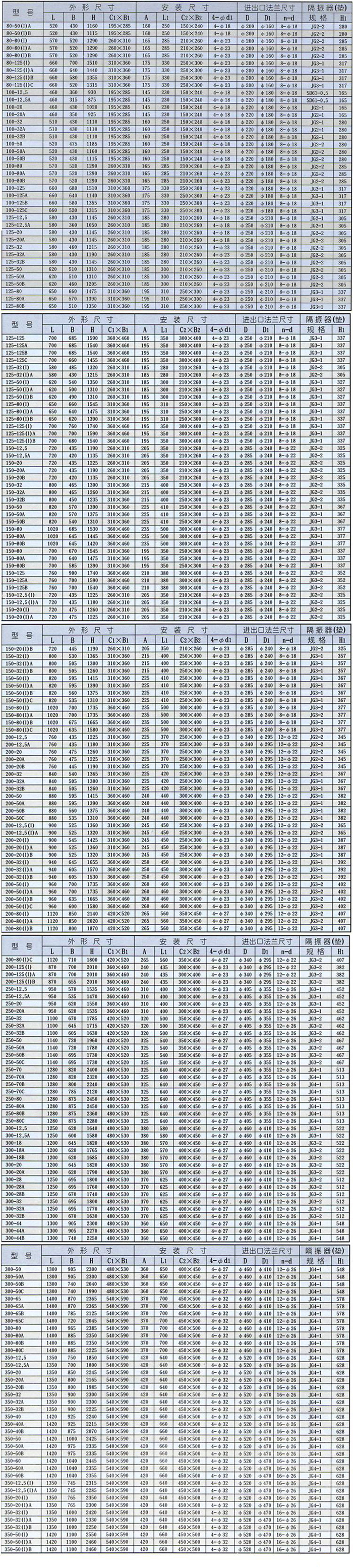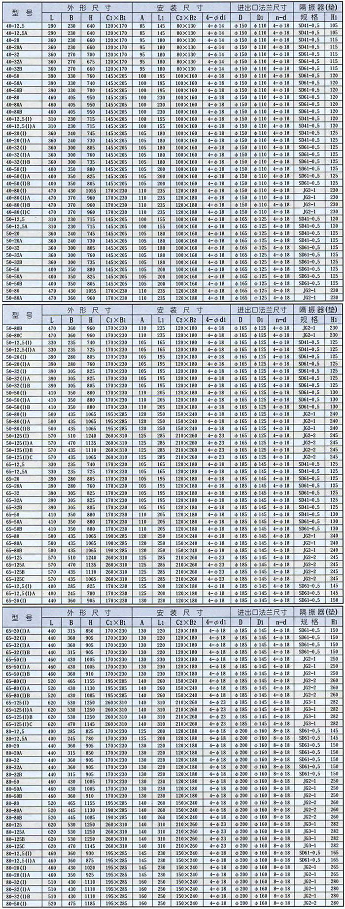 ISGB型便拆立式管道離心泵安裝尺寸表: