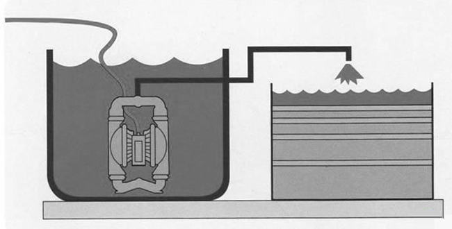 將泵浸在液體中,可代替潛水泵使用,壓縮空氣另用軟管引出。