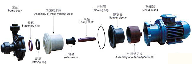 磁力泵結(jié)構(gòu)緊湊,外型美觀,體積小,使用維修方便。可廣泛用于化工,制藥,石油,電鍍,食品,電影照相洗印,科研機(jī)構(gòu),國(guó)防工業(yè)等單位抽送酸,堿液,油類稀有貴重液,毒液,揮發(fā)性液體,以及循環(huán)水設(shè)備配套,過(guò)率機(jī)配套。特別是易漏,易燃,易爆液體的抽送。防爆電動(dòng)機(jī)選用此泵則更為合適。