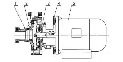 1、泵殼 2、葉輪-軸總成 3、機械密封 4、泵蓋 5、電機 安裝尺寸: