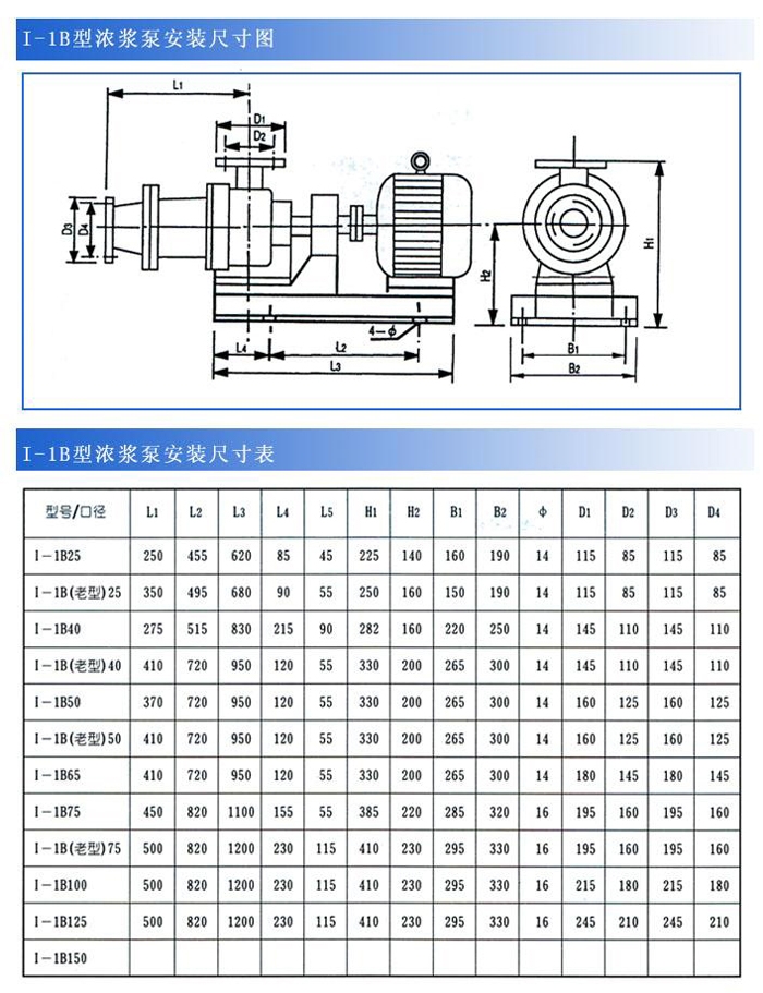 I-1BB型:殼體鑄件,傳動件(主軸、螺桿和繞軸)為2Cr13不銹鋼制造,適用于一般中性濃漿液輸送,一般微酸、堿漿液輸送。