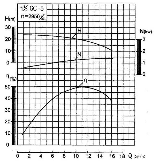 1.GC型水泵為多級(jí)分段式,1.5GC-4GC四個(gè)型號(hào)的進(jìn)出口分別在進(jìn)水段和出水段上,均垂直向上,其揚(yáng)程可根據(jù)使用需要而增減水泵級(jí)數(shù)。水泵裝配良好與否,對(duì)性能影響很大, 尤其是各個(gè)葉輪的出口與導(dǎo)翼進(jìn)口之相對(duì)位置,每吸葉輪的吐出口中心必須對(duì)準(zhǔn)導(dǎo)翼的中心,其中稍有偏差即將使水泵的流量減少,揚(yáng)程降低,效率差,故在檢修后裝配時(shí)務(wù)必注意,若有偏差必須調(diào)整。