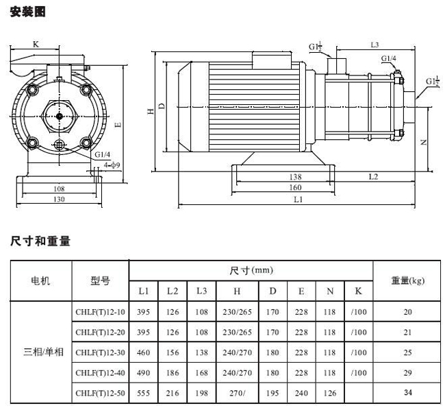 CHLF,CHLF(T)輕型段式多級(jí)離心泵(安裝尺寸)