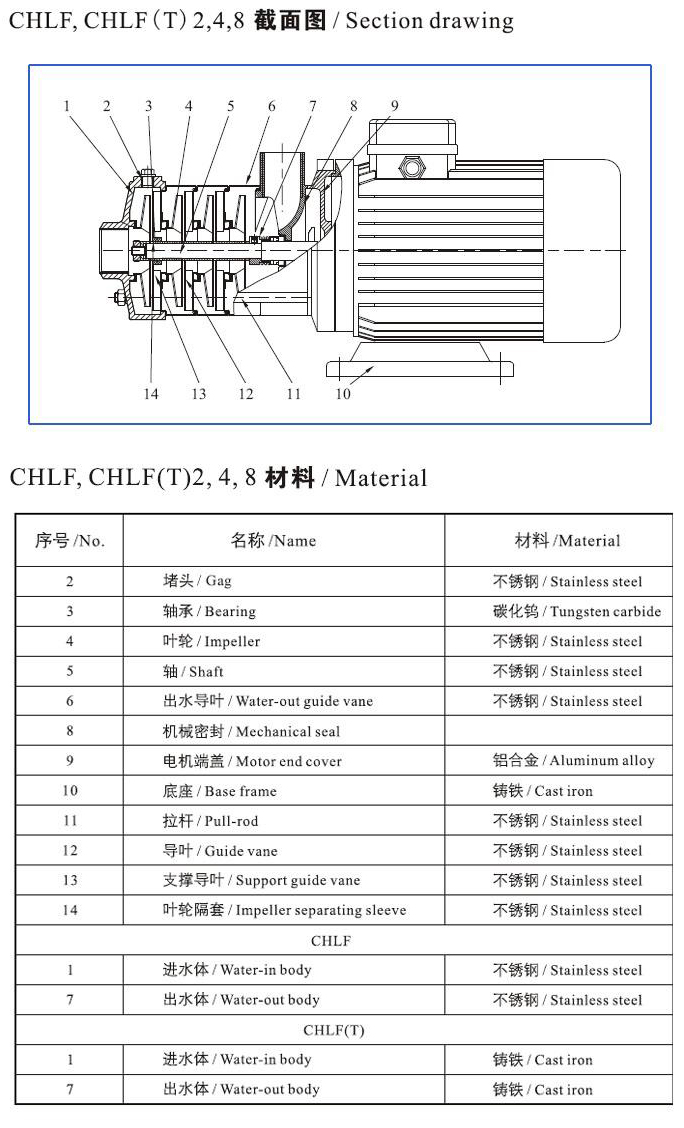 CHLF,CHLF(T)輕型段式多級(jí)離心泵(結(jié)構(gòu)圖)