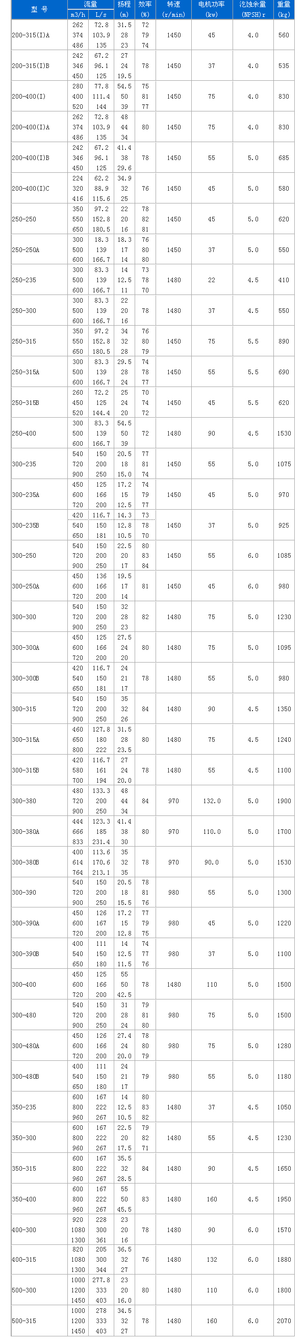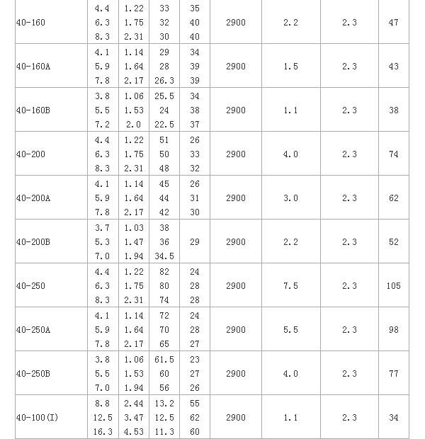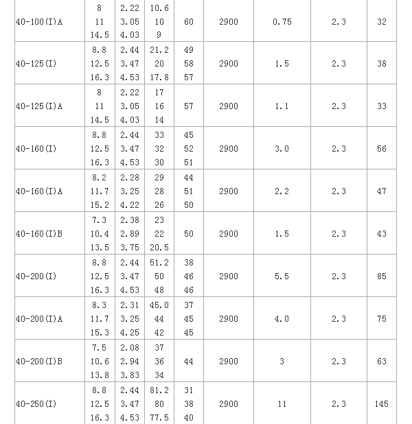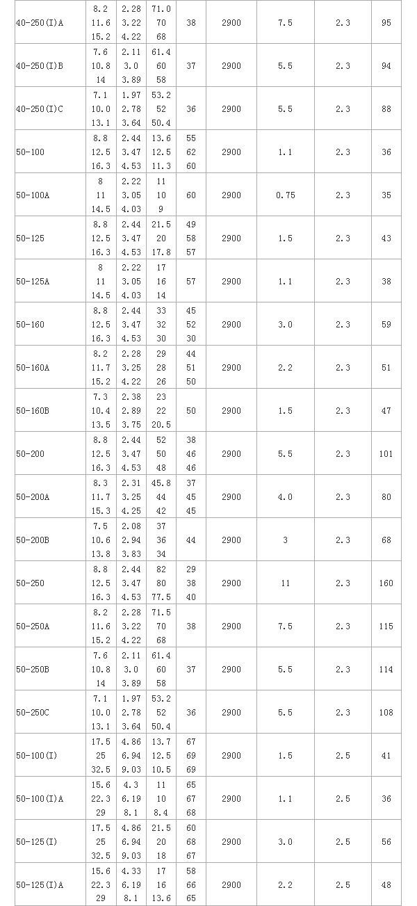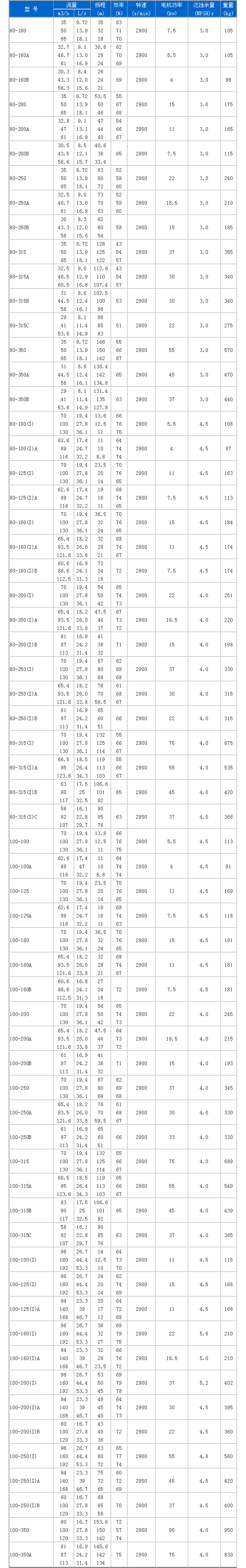 ISW型臥式管道離心泵 性能參數(shù):
