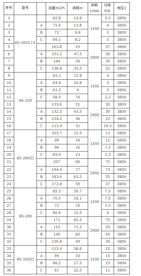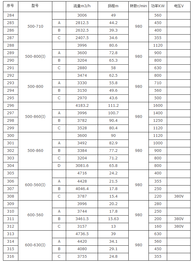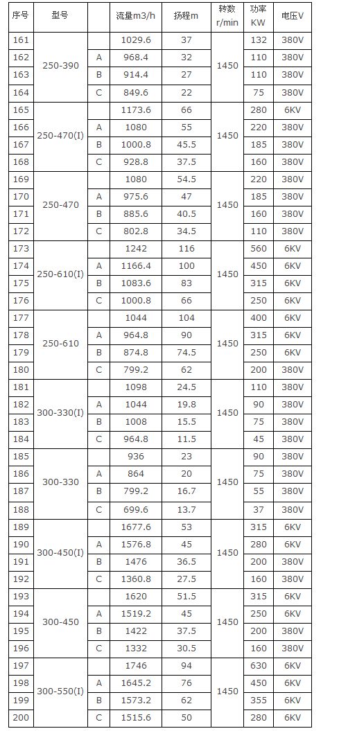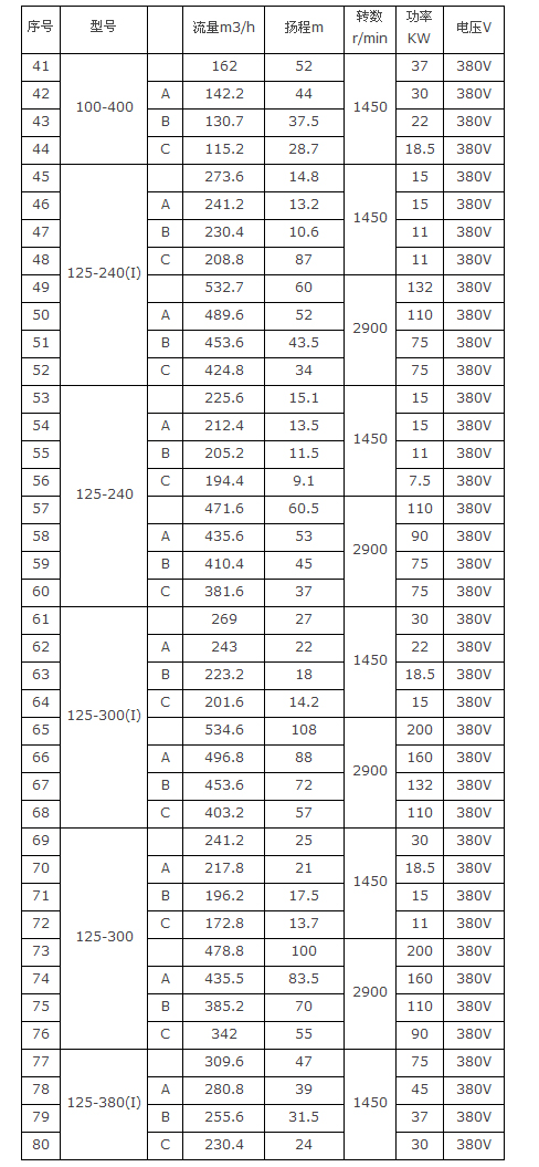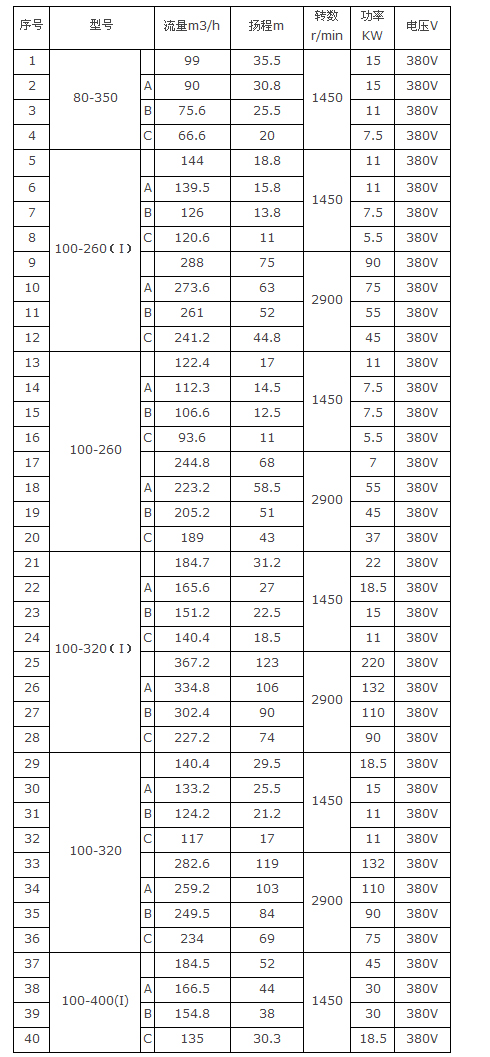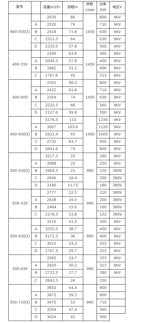 TPOW型中開蝸殼單級雙吸離心泵 性能參數(shù):